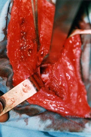 Incisão das margens da cartilagem com bisturi,lamina nº 15.